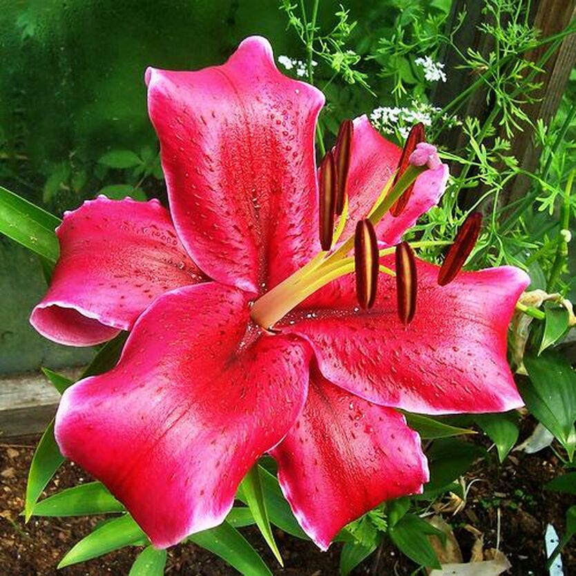 Лилия восточная Барракуда (Lilium oriental Barracuda) украсит сад цветами во второй половине июня, июле. Высота стебля до 90 см, зелень спокойная матовая. Растение отличается необычной формой и окраской цветка. Очень крупные, до 22 см в диаметре, цветки имеют всего 6 лепестков. Форма лепестка широкая у основания с зауженными концами, края волнистые, слегка загнутые от центра. Лилия восточная Барракуда имеет насыщенный яркий пурпурно-розовый цвет с желтовато-белой окантовкой