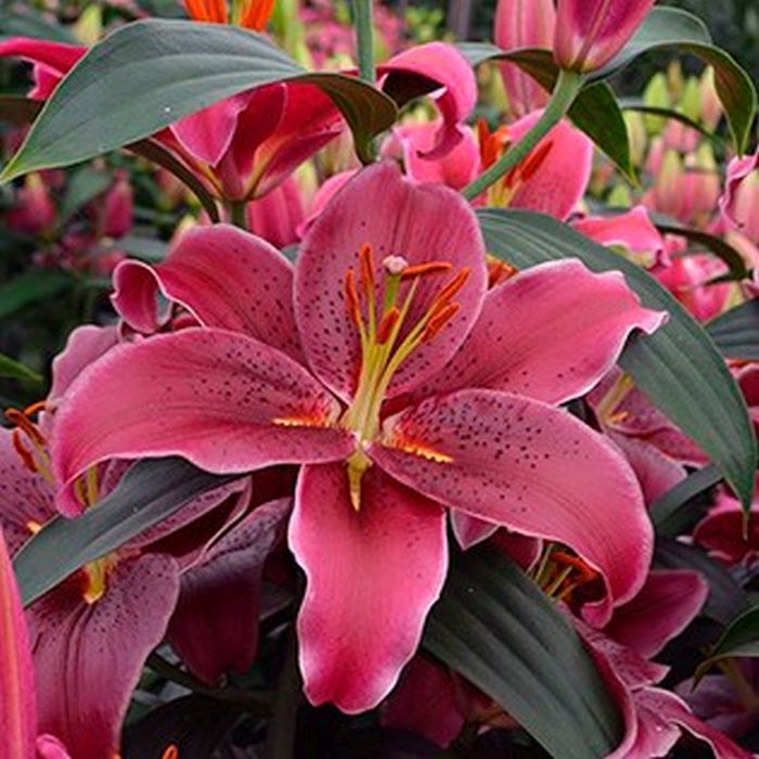 Лилия восточная Брукс – цветок розово-малиновый с тонкой белой каймой и бордовым крапом, диаметр цветка 20 см. Посадку луковиц производят весной (после окончания заморозков) или ранней осенью. Почву предпочитают хорошо дренированную, рыхлую, богатую минеральными веществами. Полив следует сделать умеренным, излишняя влага для лилий губительна. На зиму перед наступлением холодов Лилию восточную Брукс укрывают листьями и травой.