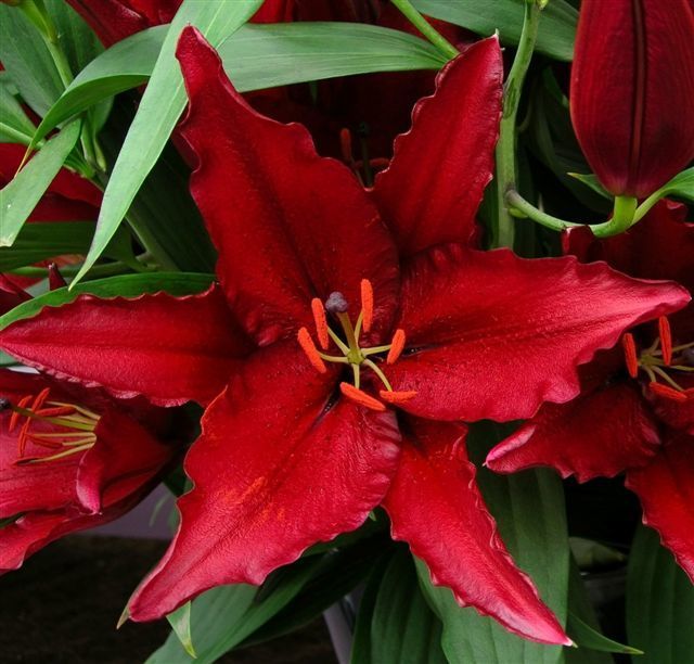 Луковицы лилии восточной Файрболт (Lilium hybrid oriental Firebolt) обязательно придутся по вкусу ценителям глубоких оттенков. Соцветия у этого сорта крупные (до 25 см в диаметре), их лепестки окрашены в насыщенный винный цвет с добавлением черных вкраплений. Они появляются поздно, в августе и в сентябре, когда остальные цветы в саду уже отцветают. Лилия Файрболт особенно эффектно смотрится в пышных букетах или цветочных массивах, при этом расставляет правильные акценты. Лилию восточную Файрболт легко выращивать в домашних условиях. Достаточно периодически поливать ее и подкармливать минеральными удобрениями, а зимой укрывать от морозов, чтобы цветы получались особенно яркими и крупными.