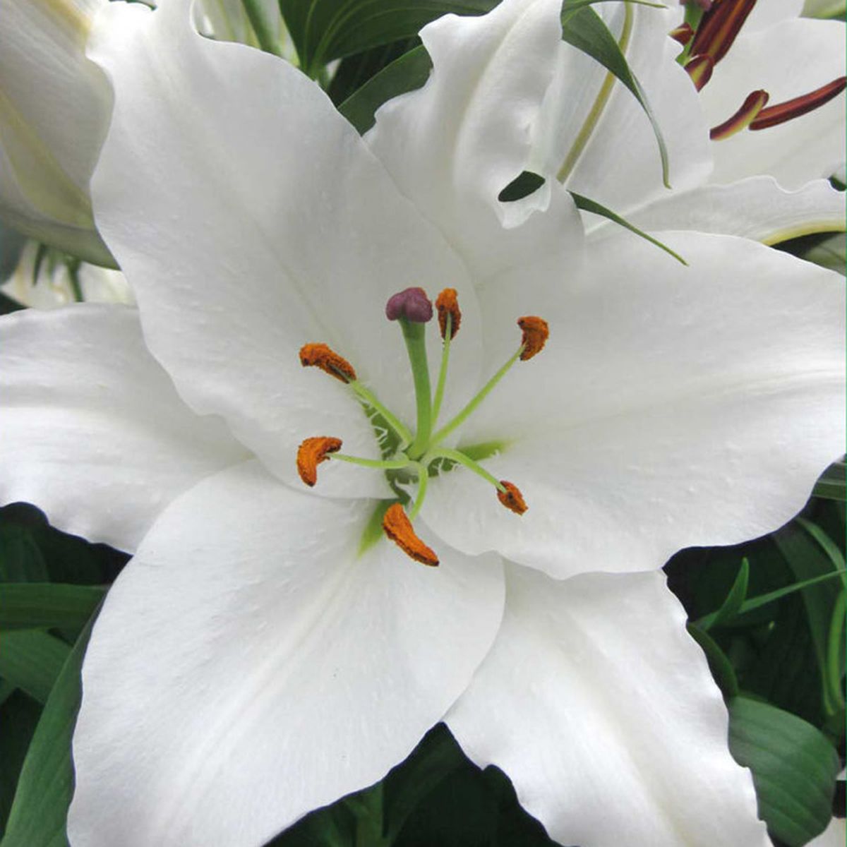 Луковицы лилии восточной Нова Зембла (Lilium hybrid oriental Nova Zembla) — это изысканный цветок для клумб и букетов. Он распускается во второй половине лета, и на высоких цветоносах (до 100 см) одновременно появляется до 8 цветов, до 20 см в диаметре каждый. Их лепестки классического белого цвета, очень легкие и ажурные, у центра присутствует незначительный оттенок зеленого. Лилия Нова Зембла незаменима при создании букетов. Эти цветы могут быть как центральной деталью композиции, так и оттенять другие, слишком яркие расцветки. Уход за Лилией восточной Нова Зембла несложен: растение адаптировано к условиям умеренного климата и без проблем переносит летние и зимние перепады температур в открытом грунте.