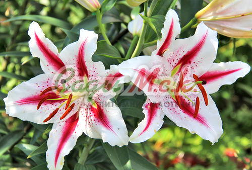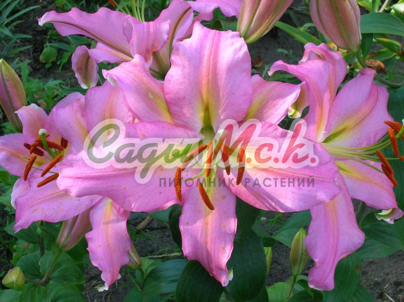 Лилия восточная Вангелис имеет цветы малиново-рубиновой окраской, с белой тонкой каймой с желтым центром и малочисленным редким темным крапом. Цветки направлены в сторону и вверх. Имеет сильный аромат. Предпочитает солнечные участки или полутень. Лилия восточная Вангелис устойчива к грибковым заболеваниям, зимостойкая.