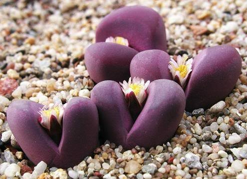 Литопс Optica - диковинный компактный цветущий многолетник. Длина и диаметр листьев не превышают 2-3 см. В их окраске преобладают малиново-бордовые оттенки. Цветки обычно белые с желтой сердцевиной. Диаметр цветка около 1 - 1,5 см.