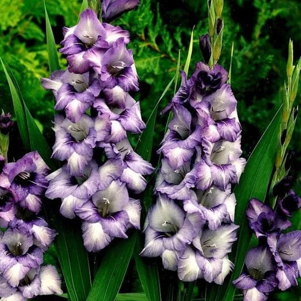 Гладиолус крупноцветковый Хидден Треже (Gladiolus) используют в качестве декоративных элементов для украшения придомовой территории или дачного участка. Пестрая раскраска бутона не оставит к себе равнодушных. На цветке присутствуют два цвета: насыщенный сиреневый и белый. Они прекрасно гармонируют между собой.