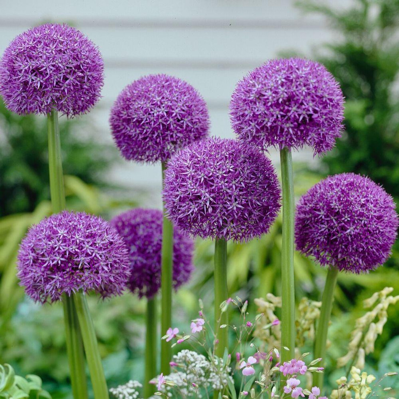 Лук декоративный Пинбол Уизард имеет шары плотных гигантских серебристо-лиловых соцветий, которые достигают размеров небольшого мяча, 15-20 см в диаметре! Только представьте себе этот чудо-шар на прочном метровом цветоносе! Если вы любитель садовых эффектов - этот сорт для вас! Можно высадить Лук декоративный Пинбол Уизард не сразу в один день, а с временным сдвигом в несколько дней, то можно продлить период фантастического любования волшебными соцветиями.