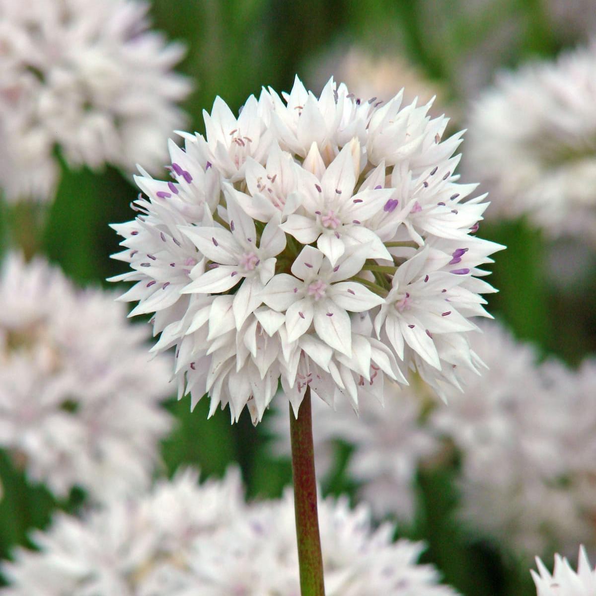 Лук декоративный узколистный Грейсфул – самый универсальный декоративный лук, который при этом поражает своей индивидуальностью. Он идеален как для посадок, так и для срезки, сухоцветов. Его цвет – белоснежный, при этом пестик имеет розовый оттенок, а тычинки – фиолетовый! Благодаря таким эффектным, но лаконичным акцентам, соцветие смотрится оригинально. Его форма – шарообразная, идеально симметричная. Цветы высокие, больше 50 см.