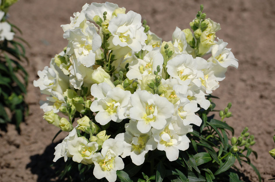 Первая на рынке серия махрового низкорослого львиного зева! Отличается крупными цветками Ø 3-5 см ярких красочных оттенков, которые собраны в плотные объемные кисти. Цветение раннее и продолжительное. Кустики крепкие, с множеством боковых побегов, высотой 25-30 см. Растения не теряют своих декоративных качеств и в жаркое, и в дождливое лето. Обильноцветущая ароматная смесь Твинни Вайт F1 украсит собой балконные контейнеры, уличные вазоны. Львиный зев можно использовать для срезки в составе великолепных букетов, надолго сохраняющих свежесть.