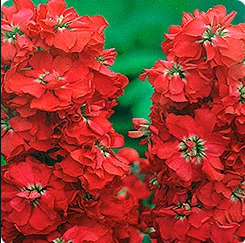 Маттиола Red Vikingг обладает стойким ароматом в период цветения. Листья зеленые,крупные, вытянутой овальной формы. Цветы пышные, многослойные и махровые. Их окрас ярко-красного цвета с выраженной зеленой серединкой цветка.