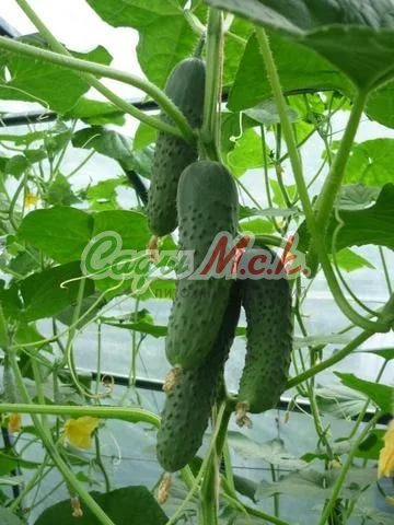 Абсолютно неприхотливый, раннеспелый гибрид для открытого грунта и пленочных теплиц. Зеленцы изящные, исключительно выровненные по размеру и форме, ярко-зелёные, крупнобугорчатые, белошипые, длиной 9-11 см, хрустящие, с отличными вкусовыми и засолочными качествами.