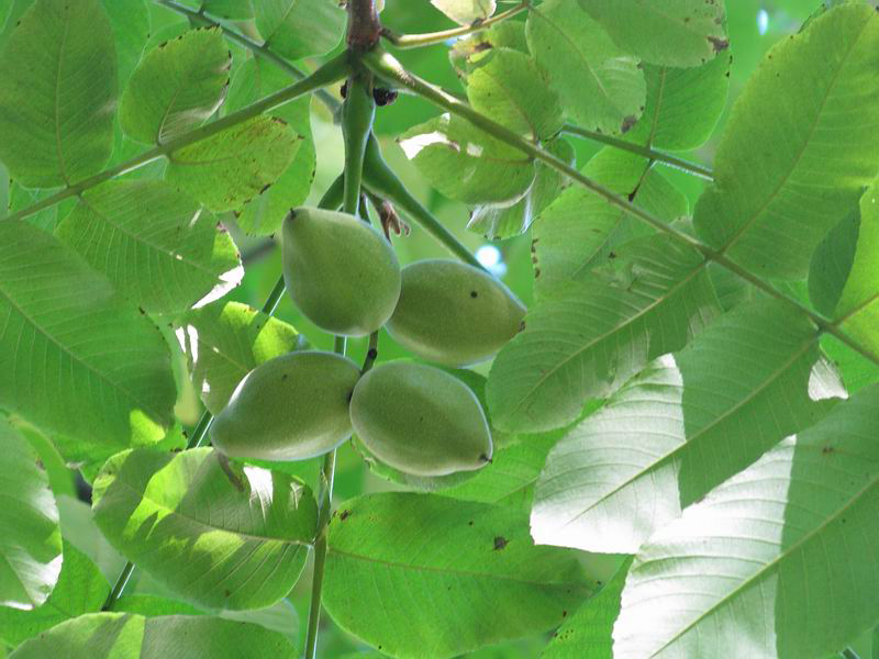 Саженцы ореха маньчжурский вырастают в кустарники высотой около 4,5 м, образующие чаще всего несколько стройных стволов. Имеет трещиноватую кору серого цвета. Обычно молодые побеги мягко опушены и железисты. Крупномер орех маньчжурский имеет одну отличительную морфологическую особенность – наличие продолговатых листьев. Большие по размеру орехи съедобны. Это теневыносливое и морозоустойчивое растение,.