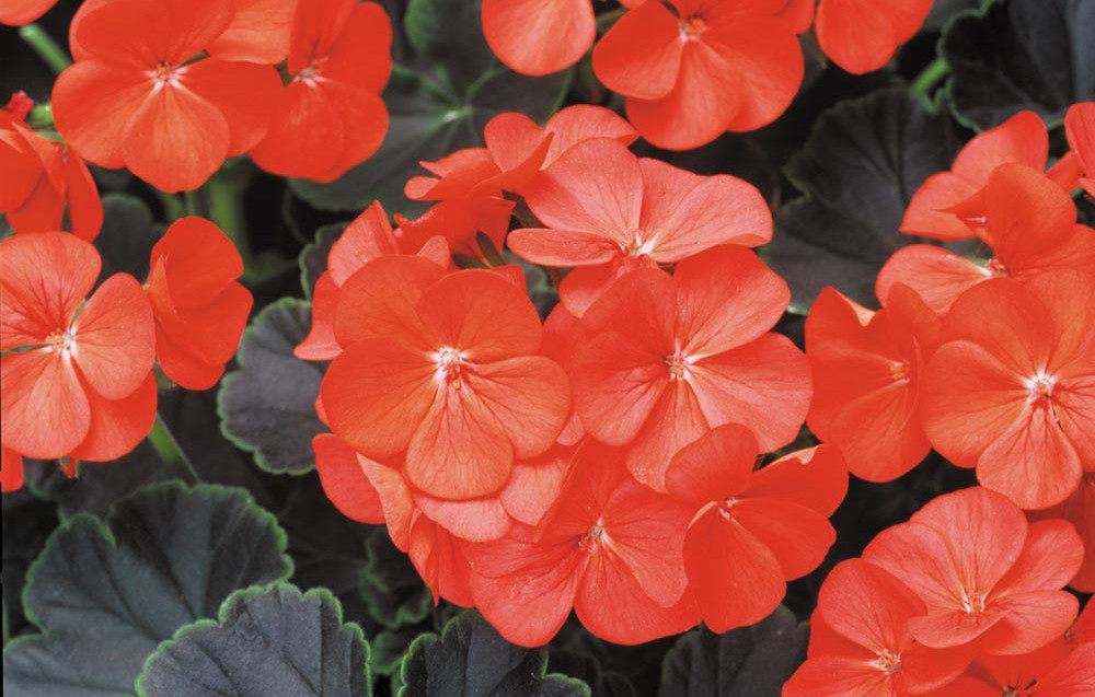 Пеларгония Burns Country - медленнорастущее карликовое растение. Листья зеленые, крупные, округлые, с гофрированными краями и черным оттенком в центре. Цветки полумахровые, многочисленные, ярко-красные со светлым центром. Цветение обильное.