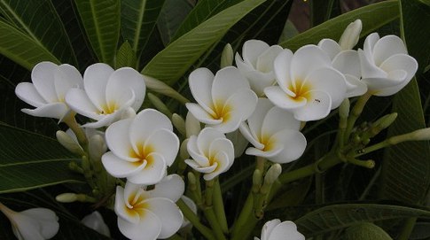 Plumeria Dwarf Singapore White - карликовое деревце высотой всего 1,8 м. Растение предпочитает солнце. Листья темно-зеленые, поперечно-жилкованные, удлиненные. Цветки снежно-белые, простые,с желтым центром, обладают очень нежным ароматом.