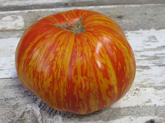 Помидор Solar Flair - невероятно редкий сорт. Плоды плоско-округлые, слегка ребристые, отличаются своим полосатым красно-желто-оранжевым окрасом. Масса плода достигает 200-300 грамм. Вкус отличный. Урожай высокий. Сорт используется для свежего потребления и засолки.