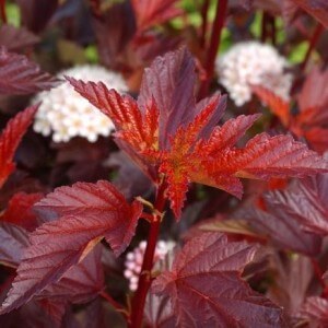 Пузыреплодник калинолистный Mindia - раскидистый кустарник с широкой, густой кроной. Достигает 2 м в высоту и до 2 м в диаметре. Растет умеренно быстро. Живет до 30 лет. Кора на старых ветках отслаивается. Листья при распускании медно-оранжевые, летом пурпурные, 3-5 лопастные. В тени цвет листьев становится менее насыщенным, вплоть до зеленого. Цветки мелкие белые или бледно-розовые, собраны в полушаровидные соцветия, появляются в мае начале июня.