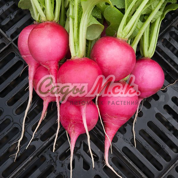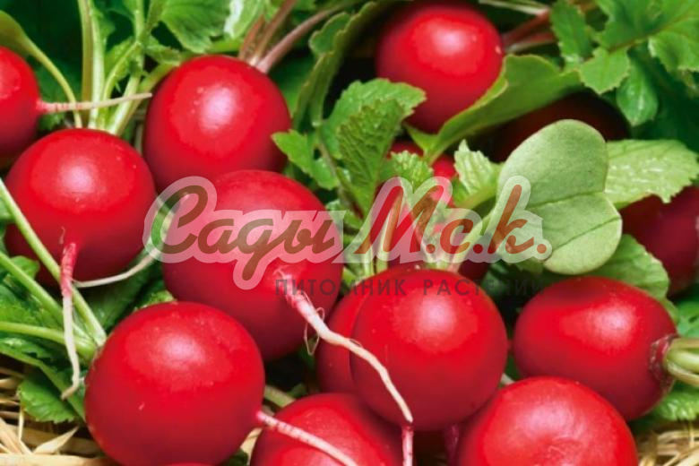 Сорт среднеспелый.Корнеплод округлой формы,карминно-красный, с бело-розовой мякотью, массой 50-60 г. Мякоть нежная, сочная, хорошего вкуса. Засухоустойчивый, устойчив к цветушности, предназначен для длительного хранения.Посев: редис можно сеять в несколько сроков. Весной: с конца апреля по середину июля, летом: с конца июля по середину августа, причём осенние посадки дают более крупные корнеплоды. Оптимальная температура для прорастания семян 15-17 градусов. Схема посадки 10х5 см. Глубина посева 2-3 см. Полив регулярный, через 2-3 дня, в сухую погоду-ежедневно.