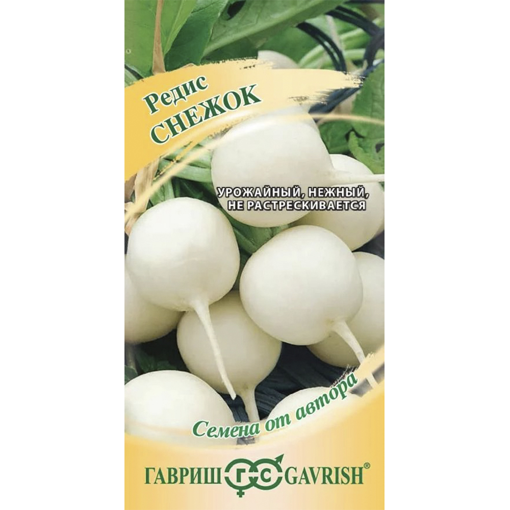 Новый ранний сорт белого редиса. Корнеплоды овальной формы, сочные, нежные, очень вкусные, массой 20 г. Посев в грунт производится в конце апреля – начале мая на глубину 1 см по схеме 5-7x15 см. К уборке приступают через 18-20 дней. Для регулярного получения урожая посевы повторяют каждые 2-3 недели. Предпочитает легкие, структурированные, хорошо удобренные почвы. Урожайность до 3,5 кг/м2.