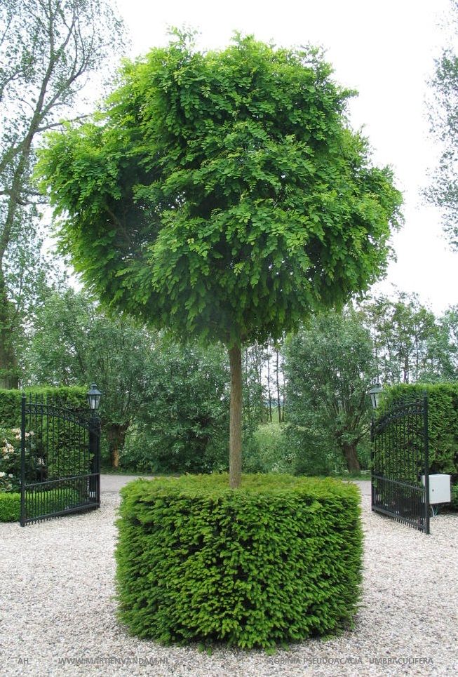 Листопадное небольшое привитое дерево с плотной, округлой кроной и тонкими побегами, с возрастом крона уплощается; растет медленно.