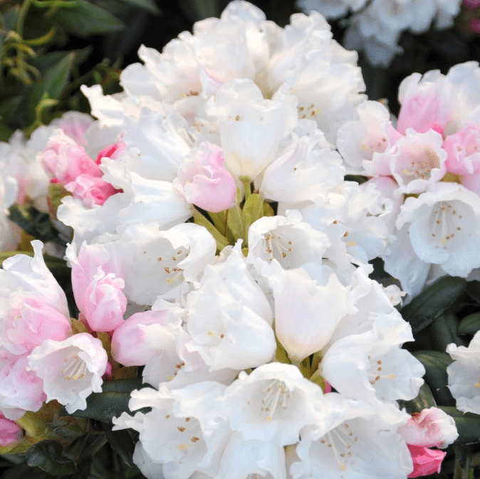 Саженцы рододендрона Эдельвейс имеют очень нежные белые цветки с едва заметным розовым оттенком. Такое растение овеет сад легким, тонким ароматом и наполнит множеством красивых соцветий.