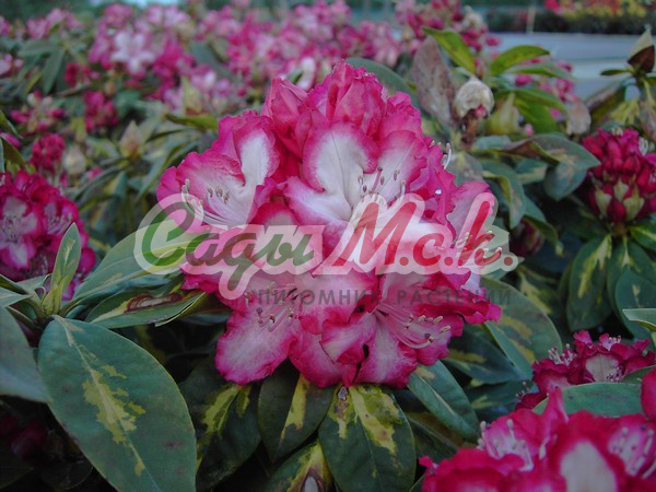 Рододендрон Erato - вечнозеленый кустарник с широкой кроной. Взрослое 10-ти летнее растение достигает высоты 140 см. Цветы чистого винно-красного оттенка с тёмно-красным пятнышком. Окраска устойчива к выгоранию. Очень эффектны в сочетании с густой темно-зеленой листвой. Обладает хорошей силой роста и морозостойкостью.