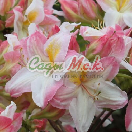 Рододендрон Jolie Madame - сорт зимостойких листопадных рододендронов. Листопадный кустарник. Высота в 10-летнем возрасте около 1,82 м. Максимальная высота 3 м. Тип роста куста вертикальный. Листья эллиптические, тёмно-зелёные, осенью тёмно-бордовые. Соцветия несут 7—9 цветков. Цветки розовые с малозаметным оранжево-жёлтым пятном, воронкообразные, ароматные. Цветение в конце мая — середине июня.