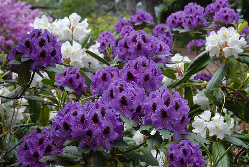 Рододендрон Peter Alan - невероятно яркий и эффектный сорт с широко открытыми фиолетовыми цветками, с темным пятном на лепестках. Соцветия крупные шарообразной формы. Листья яйцевидные, матовые. Высота 1,2-1,5 м. Цветок розово-малиновый, перламутровый. Период цветения май.