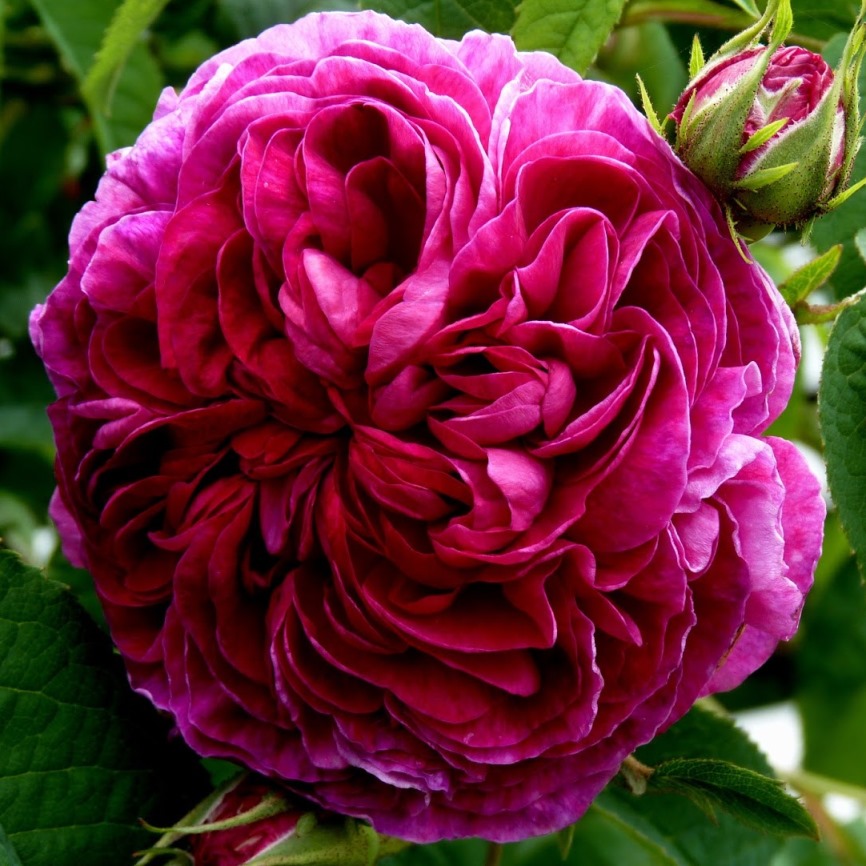 Роза Charles de Mills - куст почти бесшипный, с матовой жесткой листвой, с дуговидно поникающими побегами, которые гнутся под тяжестью цветков. Цветки крупные, вначале слегка чашевидные, с массой мелких лепестков в центре. Когда цветок полностью распустится, он напоминает перезрелый гриб. Цветки немного варьируют по окраске, но всегда присутствуют пурпурный или малиновый тон, часто с черными, сливовыми или фиолетовыми оттенками. Отдельные цветки долго не отцветают, появляются в кистях по 3 шт.