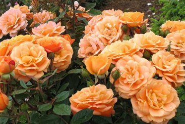 Роза Apricot Clementine отличается вновь и вновь появляющимися зонтиками цветков. Цветки диаметром 5 см, очень прочные, их оттенок удивительно красиво изменяется от розового к абрикосово-оранжевому. Высота растения 40-60 см. Кусты компактные, крепкие. Листья невосприимчивы к мучнистой росе и черной пятнистости.