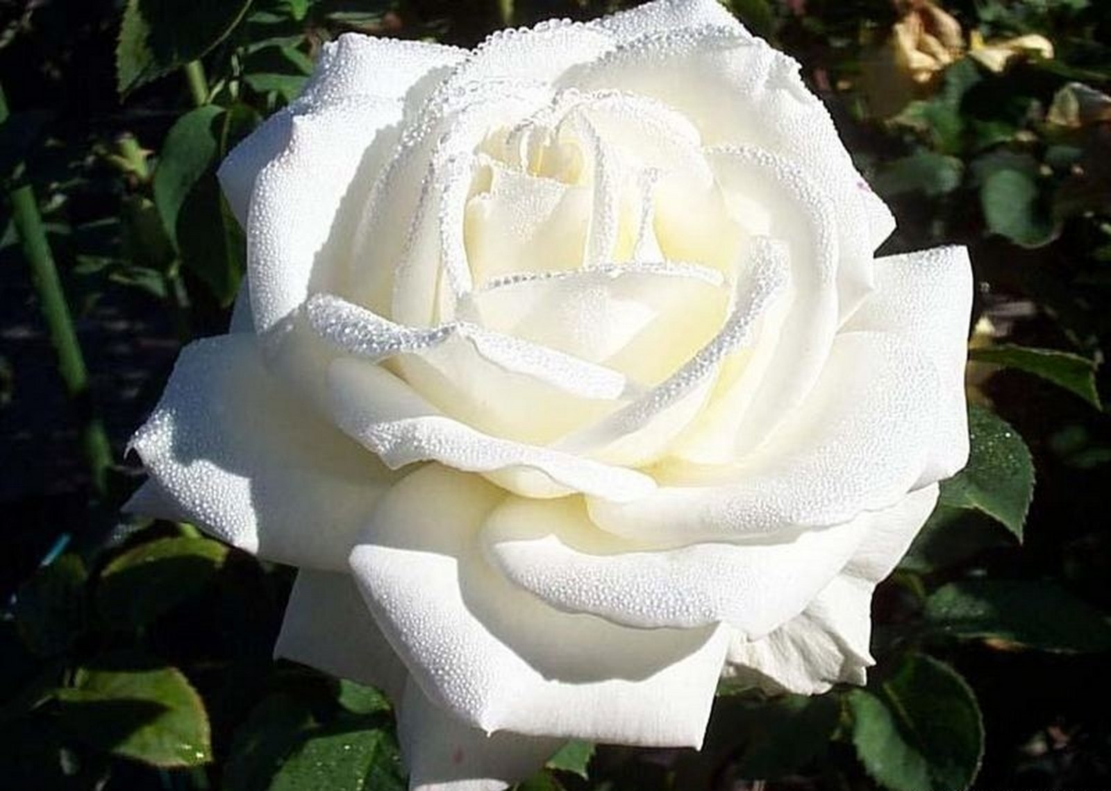 Роза Evening Star цветок белоснежный, очень красивый, у основания бледно-желтый, с высоким центром, махровый (45-55 лепестков в одном цветке). Его форма изящна, лепестки ровно уложены в ряды, аромат легок и едва уловим. Цветок очень устойчивый к неблагоприятным погодным условиям (солнце, дождь, мороз). Диаметр цветка 9-10 см, высота растения - 80-110 см. Этот сорт розы обильно цветет, устойчив к заболеваниям.