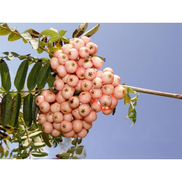 Небольшое деревце высотой 3-5м. Листья зеленые (осенью желтые, оранжевые, красные). Плодоносит в сентябре. Ягоды сначала белые, далее розовые, к моменту созревания приобретают красноватый оттенок. Предпочитает солнечные места и плодородные, умеренно влажные почвы, не выносит засухи. Зимостойка. От рябины обыкновенной отличается небольшими размерами, более изящной листвой, розовыми плодами и яркой осенней окраской листьев - оранжевой, бордовой, красной. Рекомендуется для групповых и одиночных посадок