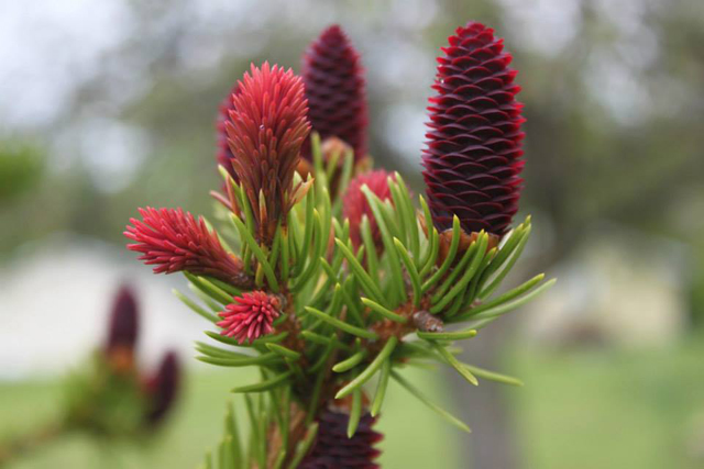 Ель обыкновенная Rubra Spicata неприхотлива, хорошо выносит даже городские условия. Крона пирамидальная, как у ели обыкновенной, средний прирост в год 15-25 см ,в 10 лет - от 2-4,5 м,изюминка сорта- лопнувшие почки нового прироста меняют цвет от малинового до пурпурного, а через 10-14 дней становятся зелеными. Шишки также весной малиновые. Морозостойкость до -40 С.