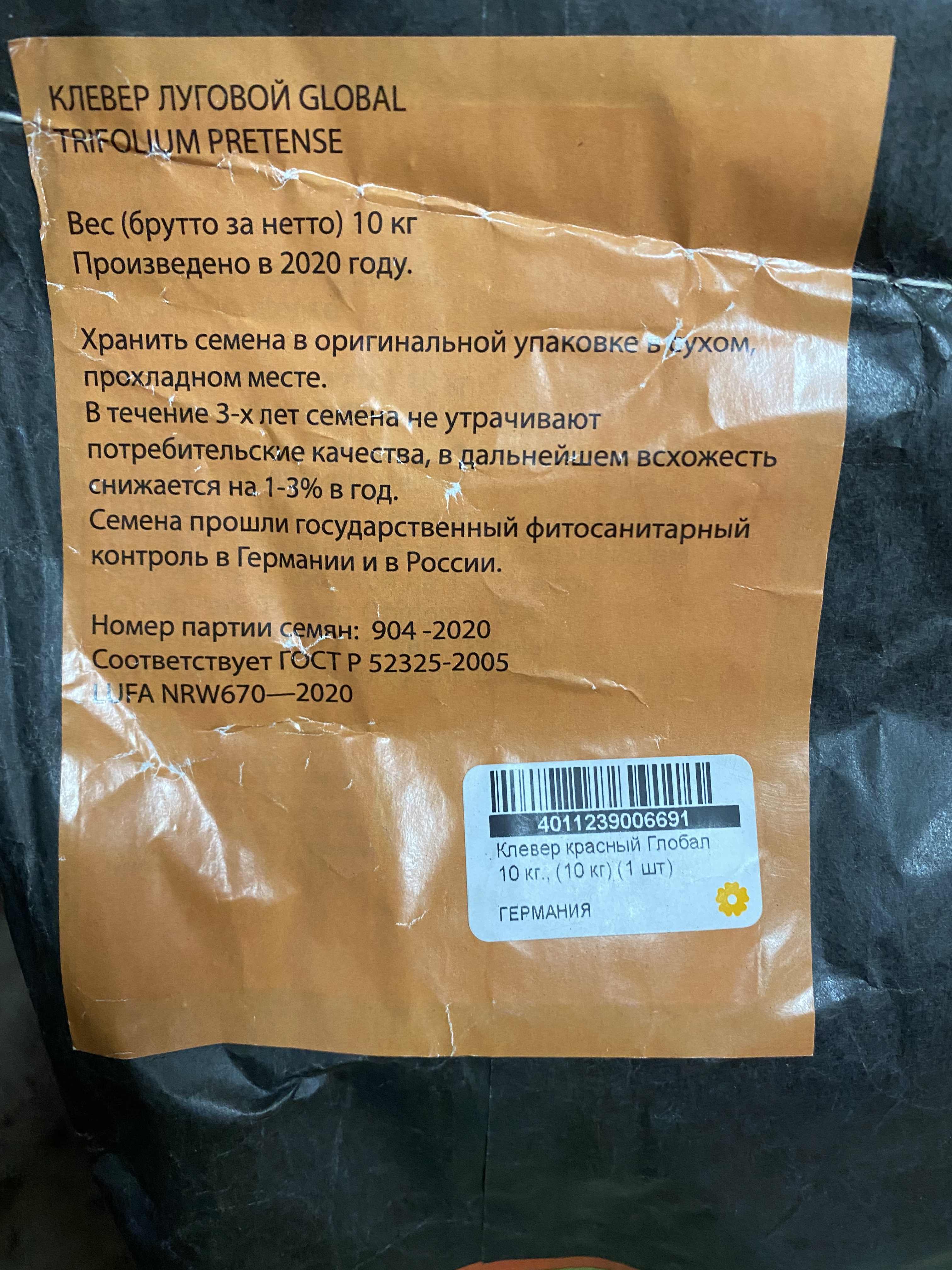 Состав: 100% Клевер красный луговой. Производитель: Фельдзаатен Фройденбергер (FELDSAATEN FREUDENBERGER). Страна: Германия. Дата производства: декабрь 2020 г.