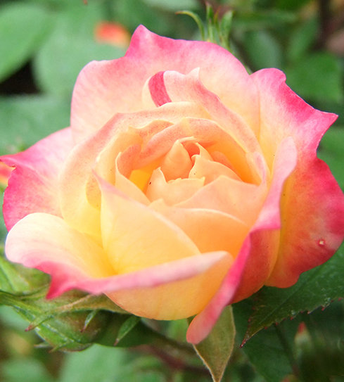 Флорибунда MASQUERADE отличается нарядым, "маскарадным" видом из-за одновременно распускающихся на кусте разноцветных (желтых, розовых, красных, желто-красных) цветков с большим разнообразием оттенков. Обильно цветет, цветки собраны в крупные соцветия. Размер цветка 6-7 см. Куст сильнорослый, высотой и шириной около 1м, с темно-зелеными, блестящими листьями. Устойчивый к заболеваниям, заморозкам, дождю и солнцу сорт.