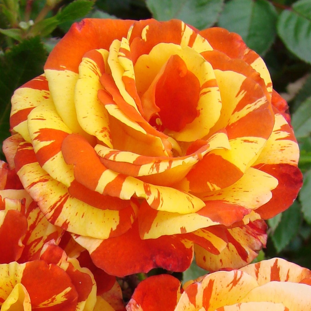 Oranges and Lemons обладает очаровательно-легким приятным ароматом. Цветки очень яркие, махровые, чашевидные, до 9 см в диаметре, лимонные с оранжевыми полосами, появляются в кистях по 3-7 шт. Цветет очень обильно и долго. Куст высотой более метра, шириной около 75 см, аккуратный, сильный. Листья красивые, темно-зеленые, пурпурные. Устойчивый к болезням и морозостойкий сорт.