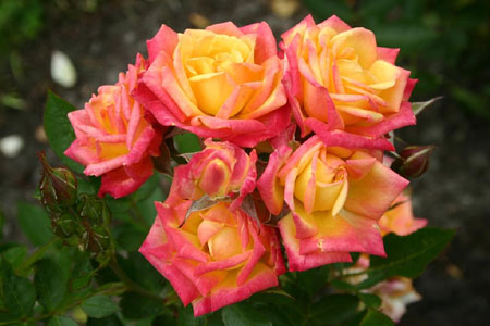 Роза Little Sunset - красивая миниатюрная роза с бокаловидными цветками в желто-красных тонах. Цветки находятся в соцветиях (по 3-5 шт). Очень устойчива к грибным заболеваниям. Куст очень аккуратной формы, прямостоячий, широкий, густой и компактный, хорошо ветвится. Высота растения - от 0,3 до 0,4 м. Сорт устойчив к заболеваниям.