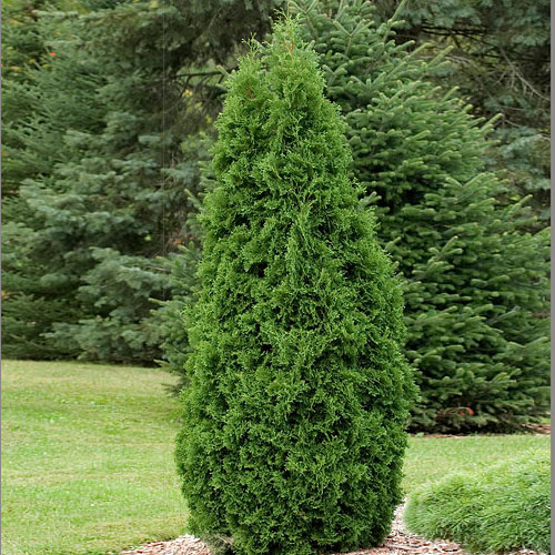 Туя западная Rosenthalii - медленно растущий колонновидный кустарник. Высота растения до 3-4 м, диаметр до 0,9 м. В 30-летнем возрасте высота растения всего 2-3 м. Крона узкоконическая, очень плотная. Хвоя блестящая, темно-зеленая. Ветви крепкие, не повреждаются снегом, горизонтальные, боковые побеги слегка закручены. Предпочитает умеренно влажные, хорошо дренированные почвы.