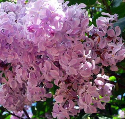 Сирень Buffon - относительно невысокий куст, не всегда достигает и 2.5 метров, но раскидистый. Соцветия широкие, конические или яйцевидные, могут достигать 30 см, состоят из крупных простых цветков. Цвет меняется от розово-пурпурного в бутонах до лилового с розовым оттенков в пике цветения и почти до белого при отцветании. Сорт раннего срока цветения.