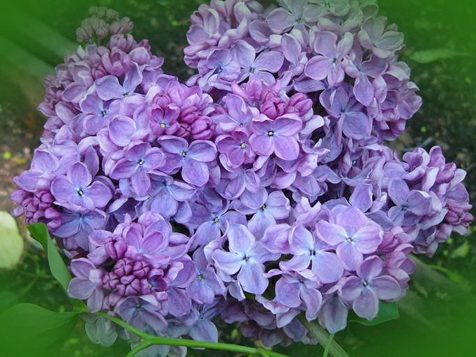 Сирень Kosmos - кустарник до 3 м высоты, овально-округлый, с прочными, прямостоячими, длинными побегами. Листья сердцевидные, темно зеленые. Соцветия до 25 см длины и 10 см ширины, пирамидальные, очень плотные, прямостоячие, метелки парные. Цветки в бутонах темно фиолетовые, при распускании интенсивно-фиолетовые с голубизной, 2,5 см диаметром, простые, ароматные. Лепестки округлые, с приподнятыми краями. Цветет обильно в средние сроки.
