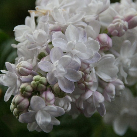 Сирень Nezhnost - куст невысокий, размером 2,2 м. Бутоны лилово-розовые. Цветки бледно-фиолетово-розовые, устойчивые к выгоранию, махровые, двухъярусные, крупные, диаметром 2,7 см, с сильным ароматом.