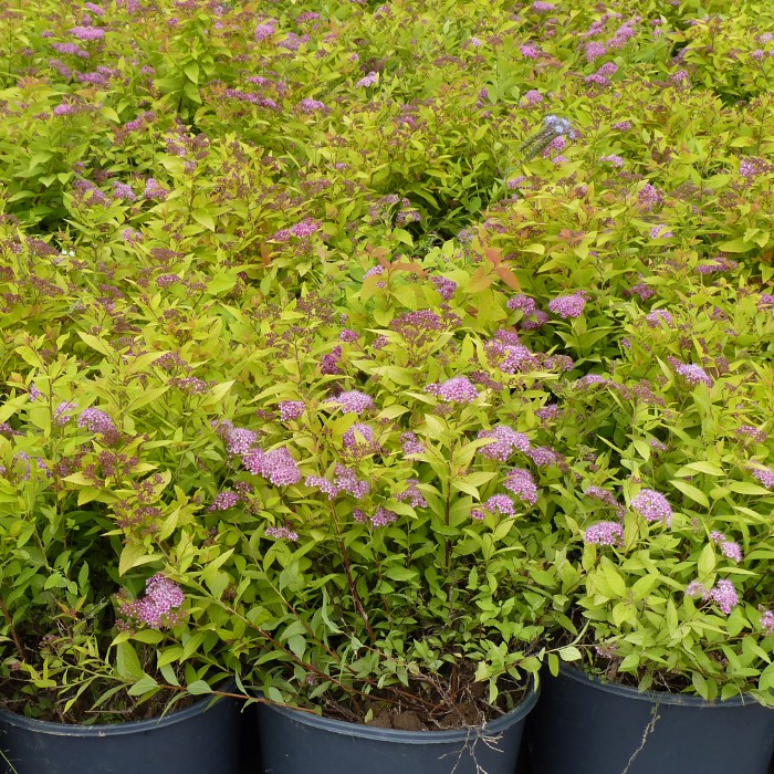 Саженец спиреи японской Goldmound не будет долго приживаться на новом месте. Его яркая листва, бледно-желтая на фоне пышной зелени весеннего паркового буйства, покроет куст плотным золотистым облаком сразу после посадки.