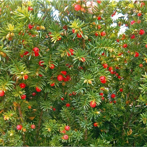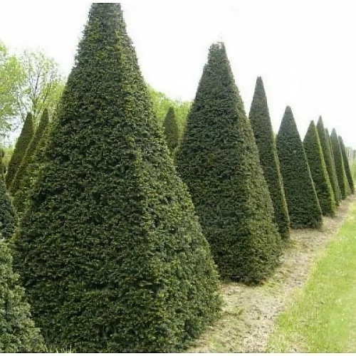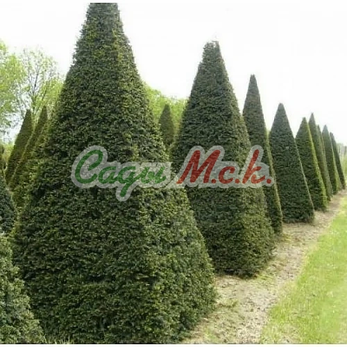 Вечнозелёный строго вертикальный крупный кустарник со стройной, плотной, колоновидной кроной и очень густо расположенными, мало разветвлёнными, с большим количеством коротких побегов, ветвями. Высота 4-8 м., ширина 0,8-1,5 м. Хвоя игольчатая, расположена радиально, широкая, изогнута вниз, свеже-зелёная. Предпочитает свежие или влажные, богатые питательными веществами, известковые почвы, хотя в целом нетребователен и хорошо растёт даже на умеренно сухих, бедных, слабокислых почвах, плохо переносит сильно кислые почвы. Выносит корневое давление других растений, городской климат, ветроустойчив. Очень долговечное растение, живёт до 1000 лет. Идеален для создания архитектурных форм, живых изгородей.