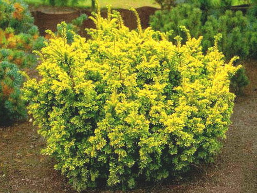 Тис ягодный Semperaurea - сорт тисса ягодного. Кустарник 1,5-2,5 м высоты. Крона 2 (3) м диаметром, широко-округлая, с плоской верхушкой. Ветви многочисленные, восходящие, раскидистые, короткие. Хвоя густая, 1-2 см длины, линейная, остроконечная, слегка серповидная, мягкая, сверху золотисто-желтая, снизу светло-золотистая или золотисто-окаймленная. Широко распространен.