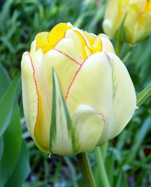 В грунт высаживать осенью (конец сентября — октябрь), когда температура почвы на глубине 10 см опустится до +8. На участки с тяжелыми глинистыми почвами вносить песок и торф, добавлять минеральные и азотосодержащие удобрения. Глубина посадки крупных луковиц 10–12 см, мелких 5–8 см. Почва должна быть легкой песчаной или суглинистой с нейтральной реакцией. Кислые почвы известкуют за два года до посадки тюльпанов. Там, где возможно промерзание почвы, желательно мульчировать торфом. Тюльпан Акебоно широко используют как для озеленения и украшения клумб, так и для букетов. +10 °С, выдерживая расстояния между луковицами 5–10 см, между рядами 20–25 см. Тюльпан Акебоно (махровый поздний) — многолетнее луковичное растение высотой 50 см с необычными завораживающими цветками диаметром 10 см. Цветки густомахровые, крупные, светло-желтого цвета с тонким ярко-красным кантом и зелеными штрихами на внешних лепестках. Перед посадкой луковицы протравить в 0,5 %-ном растворе перманганата калия в течение 30 минут