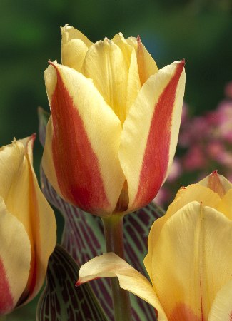 Тюльпан Donna Bella относится к группе Грейга. Высота растения до 20 см. Цветок крупный, с широким основанием и слегка отогнутыми наружу кончиками лепестков. Листва декоративная. Окрас цветка ванильно-жёлтый с тёмно-красной широкой полосой по центру. Период цветения - апрель - май. Почва - нейтральная или известково - кислая, хорошо дренированная, умеренно увлажненная. По освещённости предпочитают солнечные безветренные места. Сфера использования - для выращивания в садах, в бордюрах, на альпийских горках и т.п.