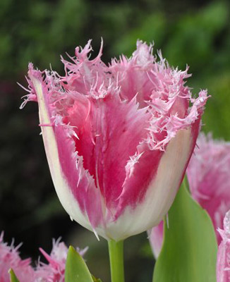 Тюльпан Huys Ten Bosch - очень нежный тюльпан, сочетающий в своей окраске оттенки розового и кремово-белого цветов, украшенный тонким кружевом бело-розовой бахромы. Сорт позднего срока цветения, цветет в конце мая. Размножается отлично.