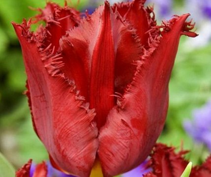Тюльпан Of Pacific Pearl - среднепоздний сорт. Высота растения 45-60 см. Листья зеленые, однотонные. Цветок классический. крупный, бокаловидный, темно-бордовокрасный, с густой, иголчатой бахромой по краям лепестков. Высота бокала -7 см, диаметр - 5 см. Цветение - конец апреля, начало мая. Размер луковицы более 12 см.