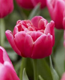 Тюльпан Sunset Tropical - красивый сорт позднего срока цветения. Цветки махровые, розовые со светлой каймой лепестков. Высота стебля взрослого растения варьируется от 30 до 40 см. Зацветает тюльпан в мае.