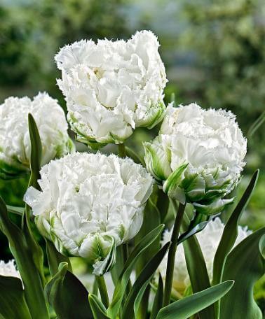 Тюльпан Snow Crystal - высокий белый махровый тюльпан с ярко-выраженной кристаллической бахромой. Цветки изысканные и чистые, как снег. Зацветает в поздние сроки, хорош для разноплановых ландшафтных посадок и срезки. Цветение продолжительное. Высота растения 45 - 50 см, диаметр цветка – 9-15 см. Цветет сорт в мае.