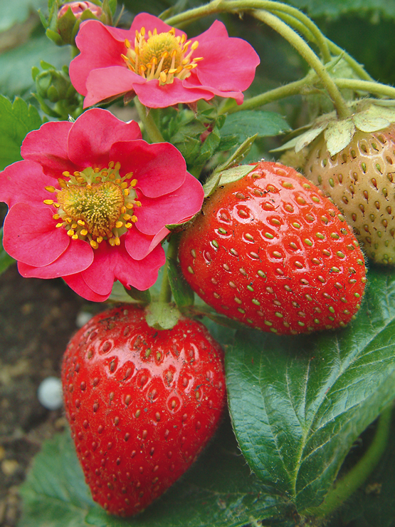 Сорт земляники садовой Pink Panda все силы отдает цветению. Если растение развивается в теплом климате, то, возможно, плодоношение даже в конце декабря и январе. Достоинства: декоративность, устойчивость к заболеваниям, возможность выращивания в подвесных корзинах.